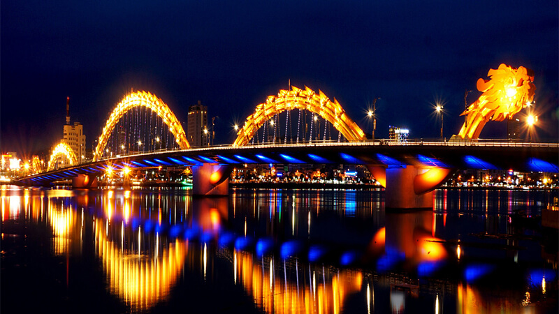 Cầu Rồng Đà Nẵng là biểu tượng du lịch nổi tiếng nhất miền Trung, thu hút hàng triệu lượt khách mỗi năm. Tọa lạc ngay trung tâm thành phố, cây cầu được thiết kế mô phỏng hình rồng thời Lý – biểu tượng cho sự thịnh vượng và phát triển của Đà Nẵng.